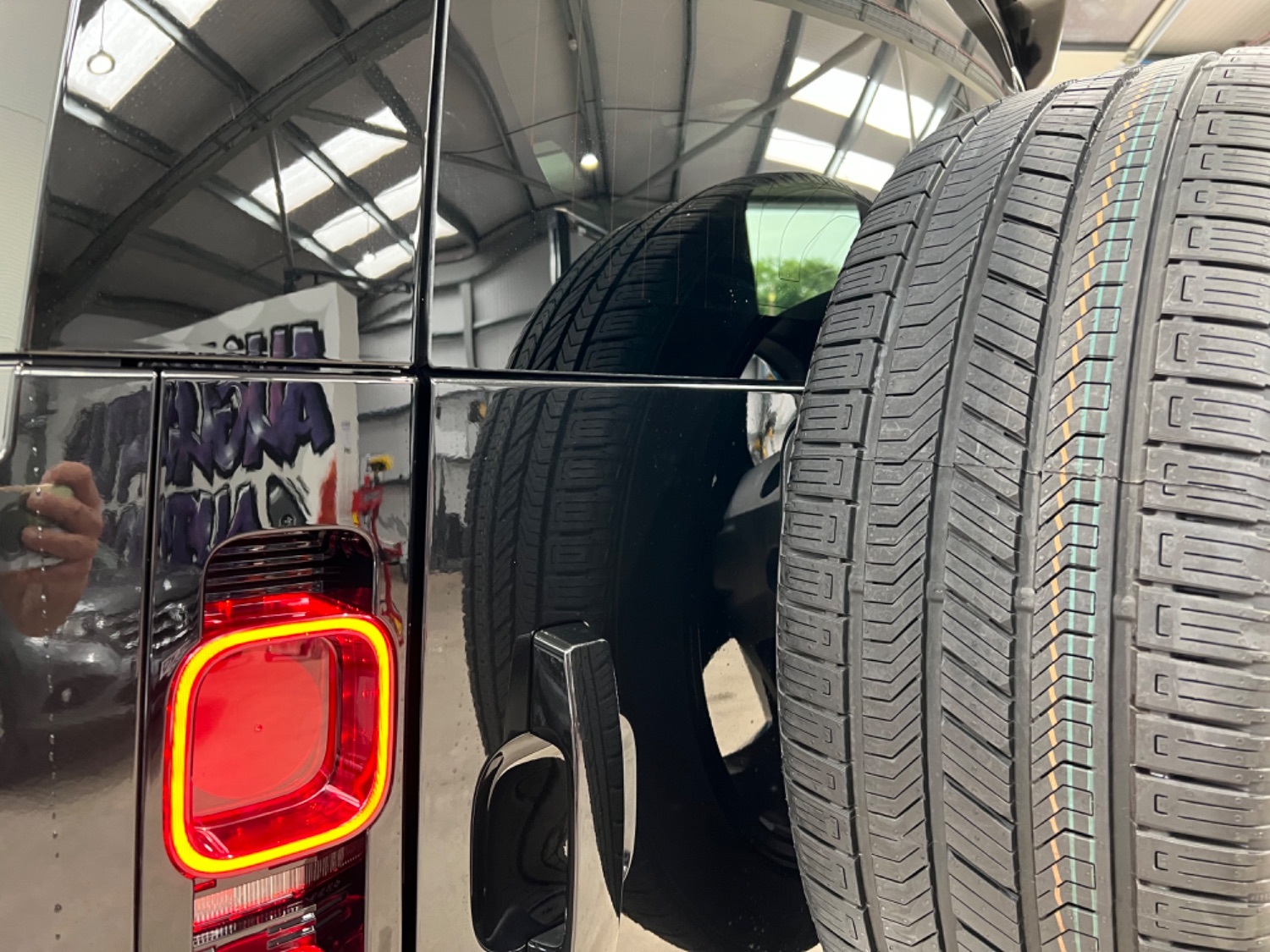 As New Full Spec HSE, 22" Alloys, Santorini Black with Oyster leather, Lunar interior, PAn Roof, Air Suspension, Meridian Sound, 360 Cameras, Privacy glass, Black roof rails, Detachable Tow bar, Full Size spare, Black exterior pack,All Season tyres